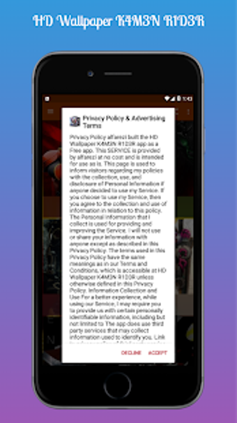 HD Wallpaper K4M3N R1D3Rは Android 用の無料プログラムで、カテゴリ「趣味」の一部になります。